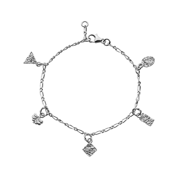 This detailed charm bracelet is endorsed with beautiful geometric pendants and twisted eyelets.