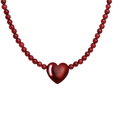 The Maroon Heart Necklace is made for those who wear their emotions with intention. The generously sized red jade heart feels grounding against the chest, its rich hue echoing the warmth of affection and the courage it takes to love deeply. Set on a chain adorned with beads, it has a subtle rhythm and texture that give the piece an elevated, sensual weight.
