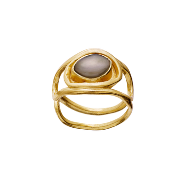 The most beautiful grey moonstone is the center of the Naomi ring. The stone is also known as the new moon stone. It is said that it contains the mysterious power of the new moon where eve-rything has potential to become better.
