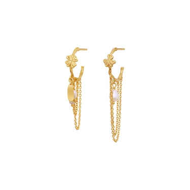 Our Inara Earrings capture the summer with their elegant chains and freshwater pearls that evoke memories of warm days with clover in the grass.