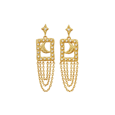 Our Barbra Earrings exude unmistakable feminine strength and charisma. With an alluring crescent surrounded by sparkling zircons, they reflect the energy only the star of the show possesses.
