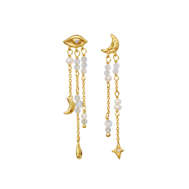 Our Sonata Earrings exude beauty as effortlessly as a melody flows. With beautiful freshwater pearls and enchanting rainbow moonstones, they are a perfect harmony of elegance and clarity.