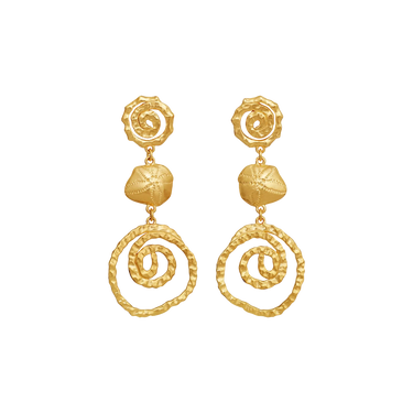 Bright as the sun, our Zalina Earrings shine in triple layers with golden spirals that fall like the sun's rays — dancing and playing in a warm summer breeze.